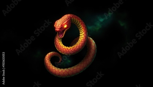 © Rahmat , Fototapeta premium Striking Red Cobra Artwork: Captivating Visual of a Circular Snake Design, Perfect for Branding, Merchandise, or Artistic Displays in Gaming and Wildlife Themes