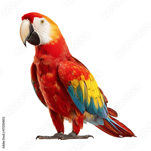 © Felippe Lopes, Naklejka premium Striking Scarlet Macaw Portrait : Vibrant plumage shines in this colorful bird A captivating display of nature ' s beauty and exotic wildlife