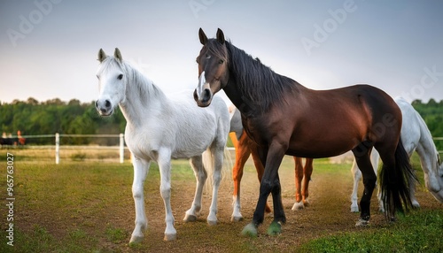 Fototapeta premium striking scene of a white horse standing prominently in the foreground,...