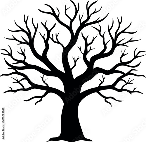 © MdJahid, Obraz premium Striking Silhouette of a Bare Tree Branching Out Against a White Background