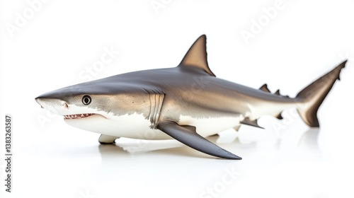 Naklejka premium Striking Studio Shot of a Great White Shark Model on White Backdrop Capturing...