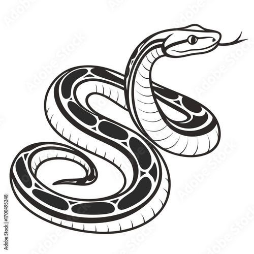 Fototapeta premium Striking Stylized Coiled Snake Vector Illustration.