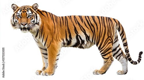 © Napasnan, Fototapeta premium Striking Tiger in Full Profile Against a White Background