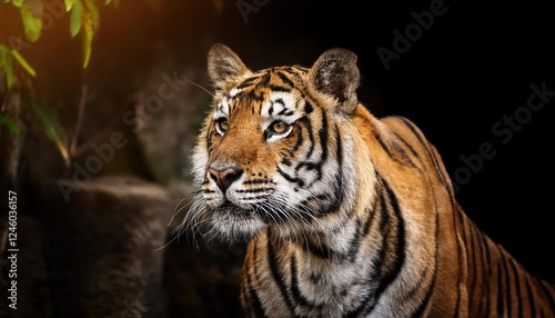 © netsay, Naklejka premium Striking Tigers Encounter in a Vibrant Wildlife Reserve at Dusk, Showcasing the Majestic Beauty and Power of a Royal Striped Feline Amidst Rich Autumn Hues.
