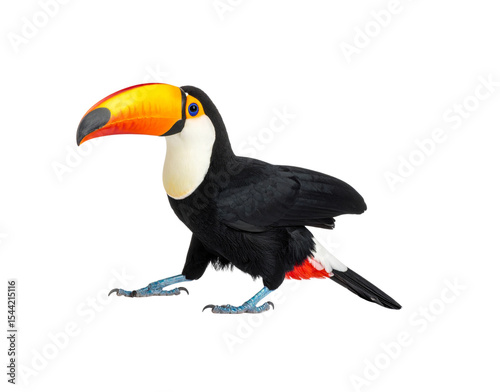 © Fridocha, Naklejka premium Striking Toco Toucan with Vibrant Orange Yellow and Black Plumage.
