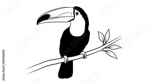 Fototapeta premium Striking toucan perches gracefully on branch, tropical wildlife art for educational resources and designs