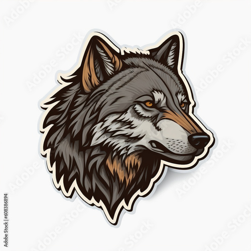 Naklejka premium Striking Wolf Sticker with Wilderness Vibes and Vibrant Background, Generative AI
