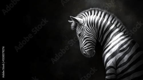 Naklejka premium Striking Zebra Portrait Black and White Beauty in the Shadows, Animal Grace...