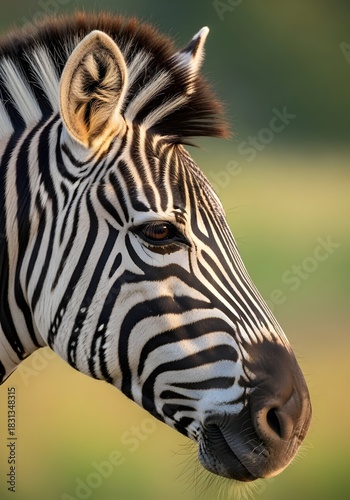 Naklejka premium Striking Zebra Portrait Capturing the Beauty of African Wildlife with Detailed Stripes and Gentle Expression in Natural Habitat