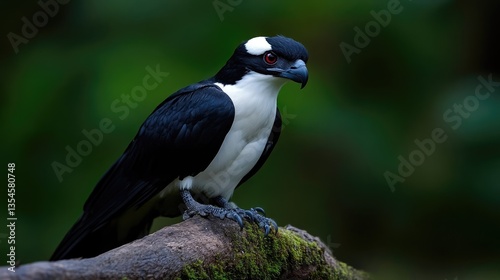 Fototapeta premium Strikingly patterned bird perched on a mossy branch