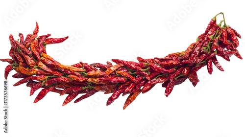 Naklejka premium String of dried red chili peppers forming an arch on transparent background