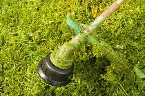 Fototapeta premium String Trimmer. Mowing the lawn. Lawn trimmer. Cut the Grass