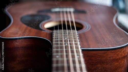Fototapeta premium Strings and neck of an acoustic guitar.