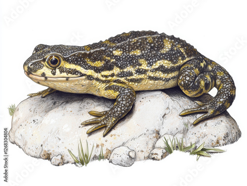 © Prachya, Fototapeta premium Striped amphibian resting on a rock