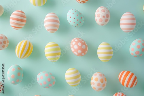 © nattapon98, Fototapeta premium Striped and dotted Easter eggs,