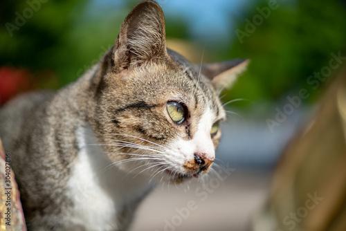 © Patara, Fototapeta premium Striped cat at the garden, portrait of Thai cat