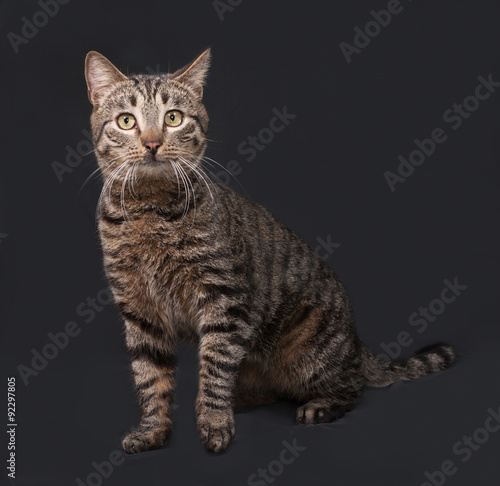 Obraz premium Striped cat sitting on dark gray