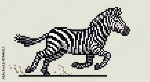 Obraz premium Striped equine animal depicted in low resolution pixel art style galloping...