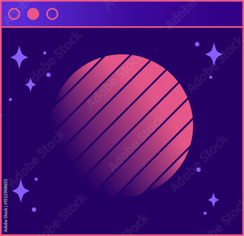 Fototapeta premium Striped gradient circle is appearing in flat web frame with stars and dots,...