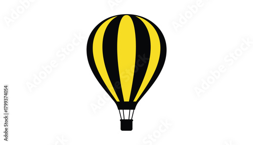 © Naseem, Naklejka premium Striped hot air balloon illustration simple flat design isolated on white background for travel and adventure concepts