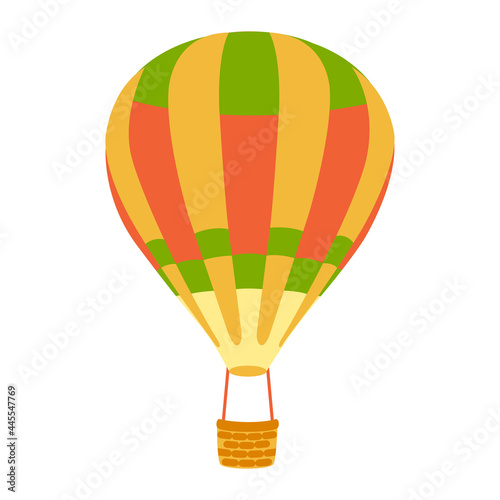 © Mallva, Naklejka premium Striped hot air balloon in cartoon style on white background. Vector illustration. Transportation background.