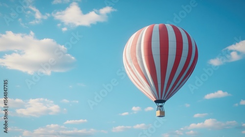 Fototapeta premium Striped Hot Air Balloon Soars Through Clouds