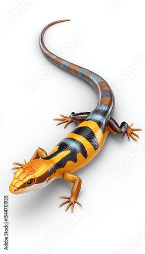 © Marut88, Naklejka premium Striped Lizard 3D Render on White Background