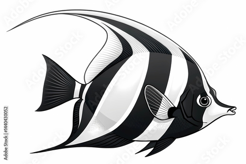 © Joseph6, Obraz premium Striped Moorish Idol Fish A Stunning Black and White Illustration