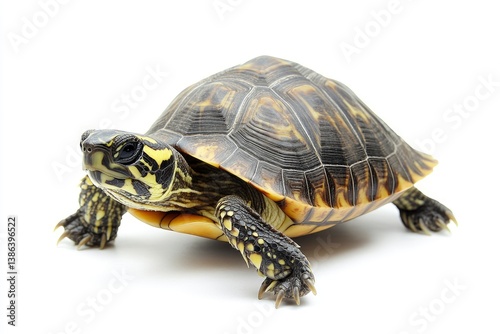 © Dzikrul Husnani, Obraz premium Striped Mud Turtle Walking on White Background in Studio Shot