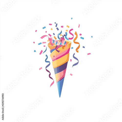 © Nobelus, Fototapeta premium Striped party horn with confetti and streamers bursting out, isolated on white background. Perfect for celebrations, birthdays, and festive events