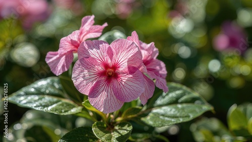 © TheWaterMeloonProjec, Fototapeta premium Striped Pink Impatiens Flower Variety