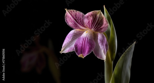 © Edi, Obraz premium Striped Purple Flower Close-up Studio Shot, Botanical Bloom, Floral Photography, Macro Image