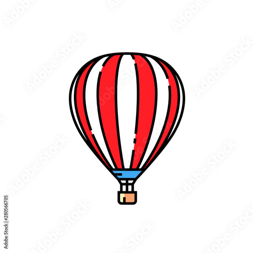 © JoelMasson, Naklejka premium Striped red and white hot air balloon line icon. Vector illustration.