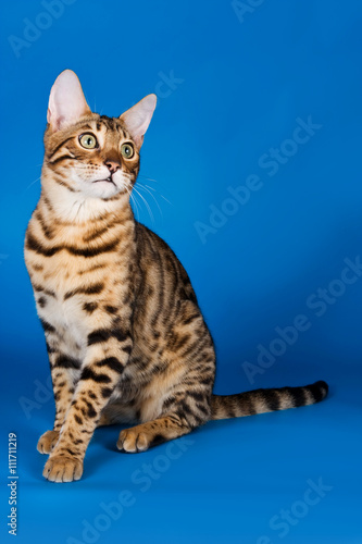 Obraz premium Striped red cat on a blue background bengal