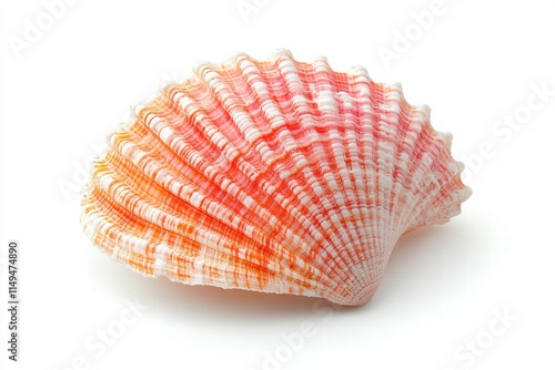 © wiwat apisithpinyo, Obraz premium Striped Scallop Seashell on White Background