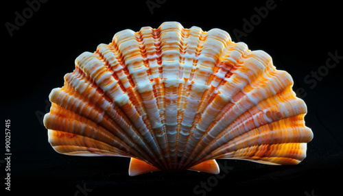 © AbdulHakim, Obraz premium Striped Scallop Shell on a Black Background