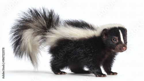 © Sko, Fototapeta premium Striped Skunk Standing White Background