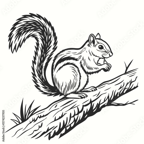 © RABBY, Fototapeta premium Striped squirrel eating on a branch rodent animal
