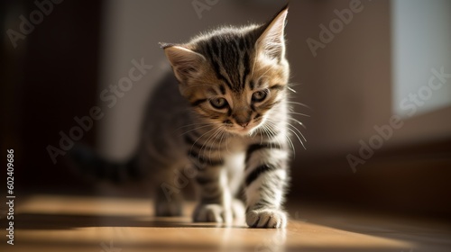 © Suleyman, Obraz premium Striped tabby kitten walks across board Generative AI
