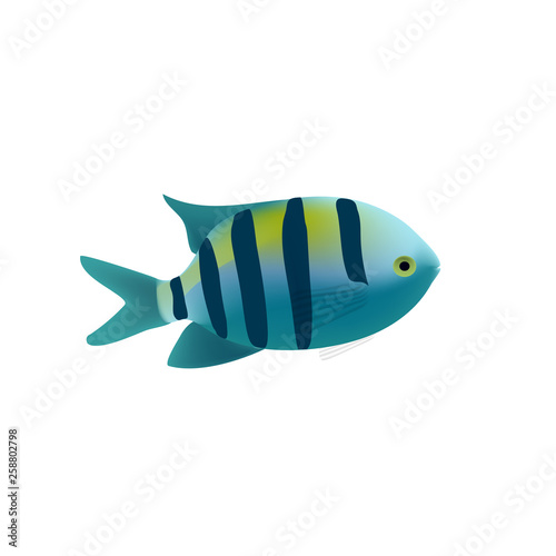 Naklejka premium Striped tropical fish isolated. Realistic fish coral reef, exotic underwater animal. Summer sea diving, travel and recreation design, design of the marine and aquarium world.