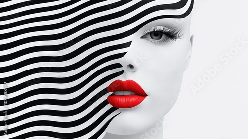 Obraz premium Striped woman with bold red lipstick