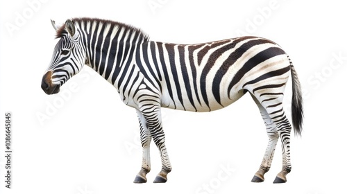 © Horsi, Fototapeta premium Striped Zebra Standing Against a White Background
