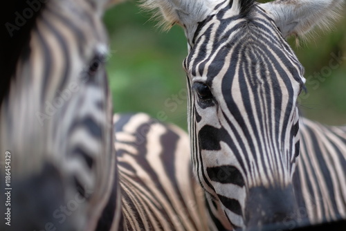 Naklejka premium Stripes of the Savanna: Close-Up of Zebras