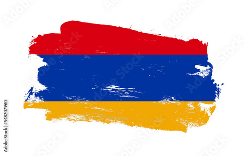 © Xookits, Obraz premium Stroke brush painted distressed flag of armenia on white background