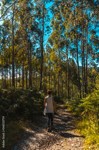 © unai, Fototapeta premium Strolling along the path between trees of the Listorreta natural park in the town of Errenteria in the park of the Peñas de Aya or Aiako Harria park. Gipuzkoa, Basque Country. In summer