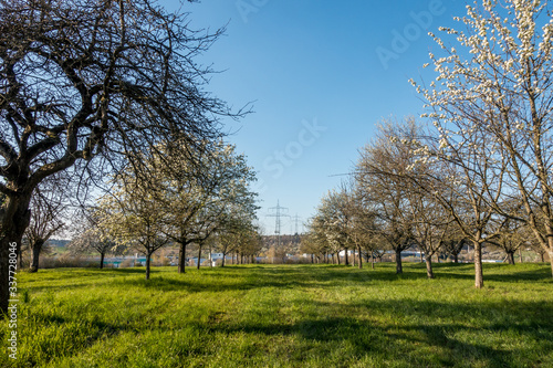 © focus finder, Fototapeta premium Strommasten im Frühjahr