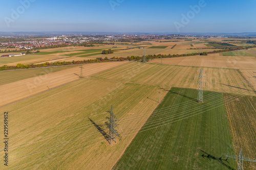 Fototapeta premium Stromtrassen durch Getreidefelder