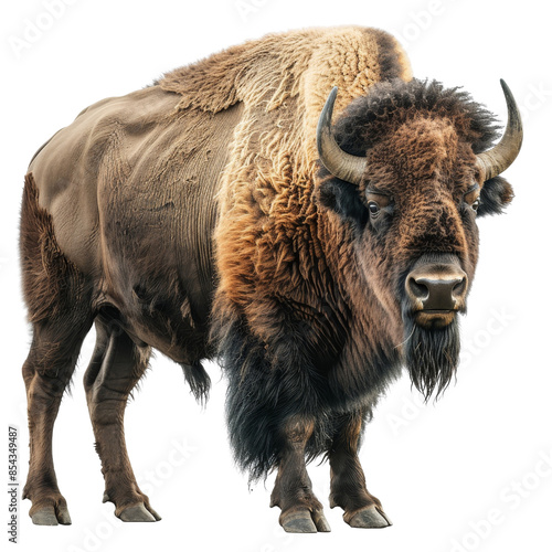 © Sippung, Fototapeta premium Strong American bison standing and looking forward on transparent background clipart