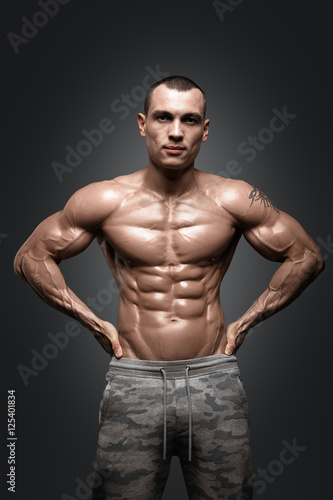 Fototapeta premium Strong Athletic Man Fitness Model Torso showing six pack abs.