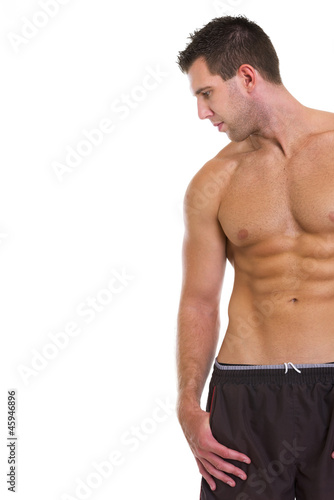 © Alliance, Fototapeta premium Strong athletic man looking on copy space